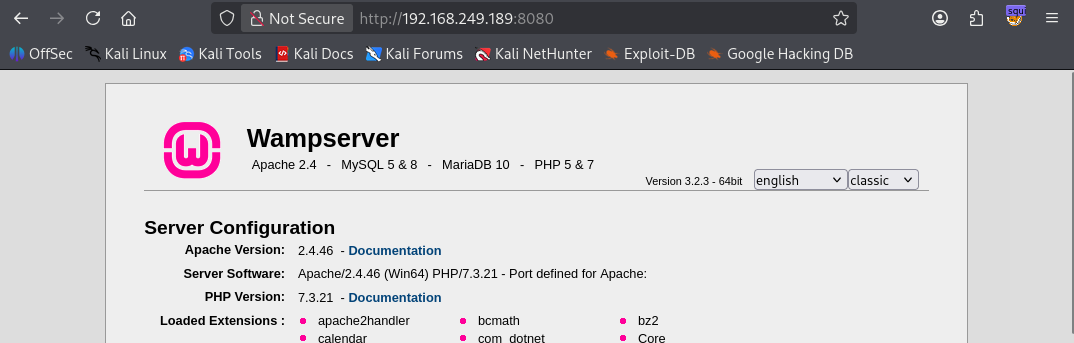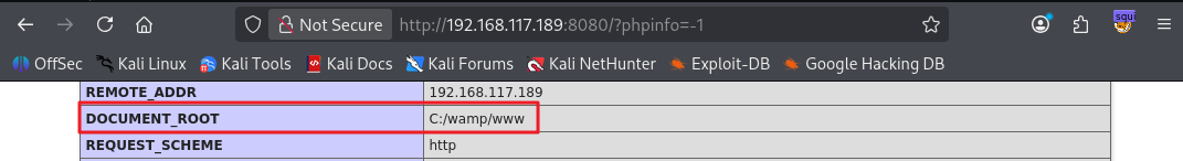 - ?phpinfo=-1 페이지에서 문서 루트 경로 C:/wamp/www 확인