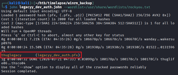 └─$ john winrm.backup.john --wordlist=/usr/share/wordlists/rockyou.txt